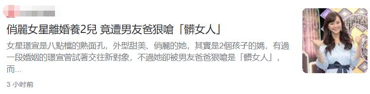 12月30日,據報導,女星廖璟宣接受了節目《單身行不行》的採訪,她自曝因離過婚有小孩,被未來公公嫌棄,無奈結束4年情。